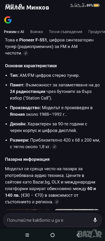 Pioneer F-551 → Обява 53490338
