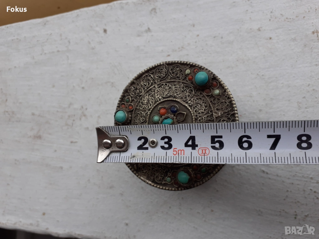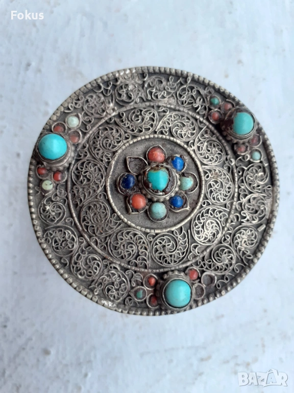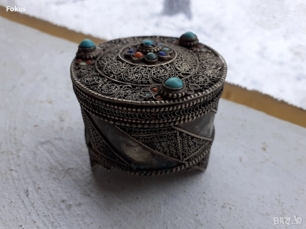 Стара османска сребърна кутийка - сачан с корали и тюркоази → Обява 53490520