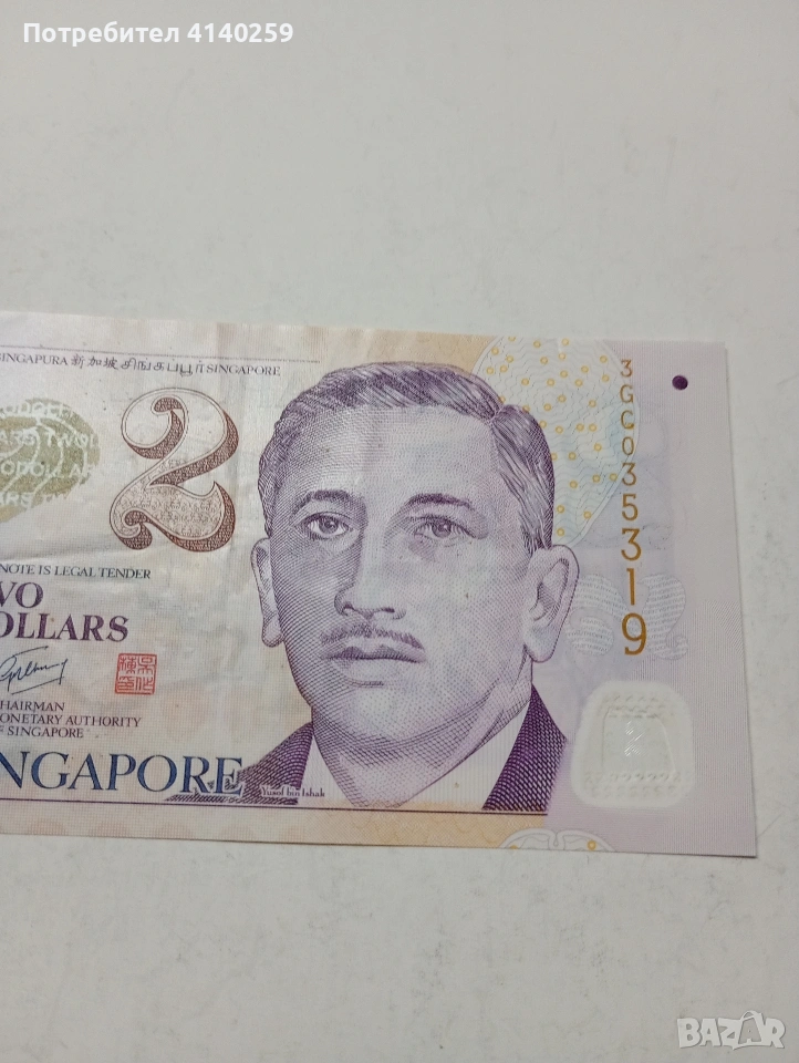 СИНГАПУР БАНКНОТА 2 ДОЛАРА 2022 Г ПОЛИМЕРНА СЪСТОЯНИЕ ВИДИМО ПОЛУЧАВАТЕ СНИМАНАТА БАНКНОТА РАЗГЛЕДАЙТЕ ДРУГИТЕ МИ ОБЯВИ ДА КОМБИНИРАТЕ ДОСТАВКА ЕКОНТ ЗА ВАРНА ЛИЧНО