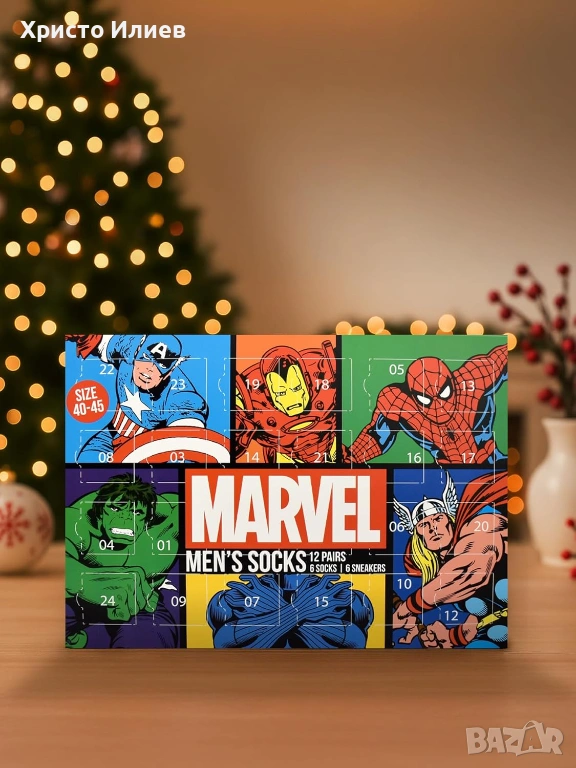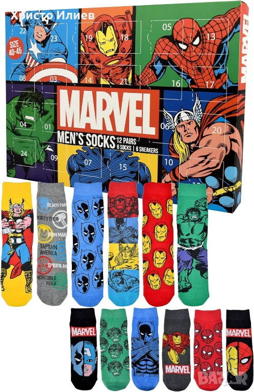 Коледен календар Мъжки чорапи Marvel Адвент календар 12 чифта