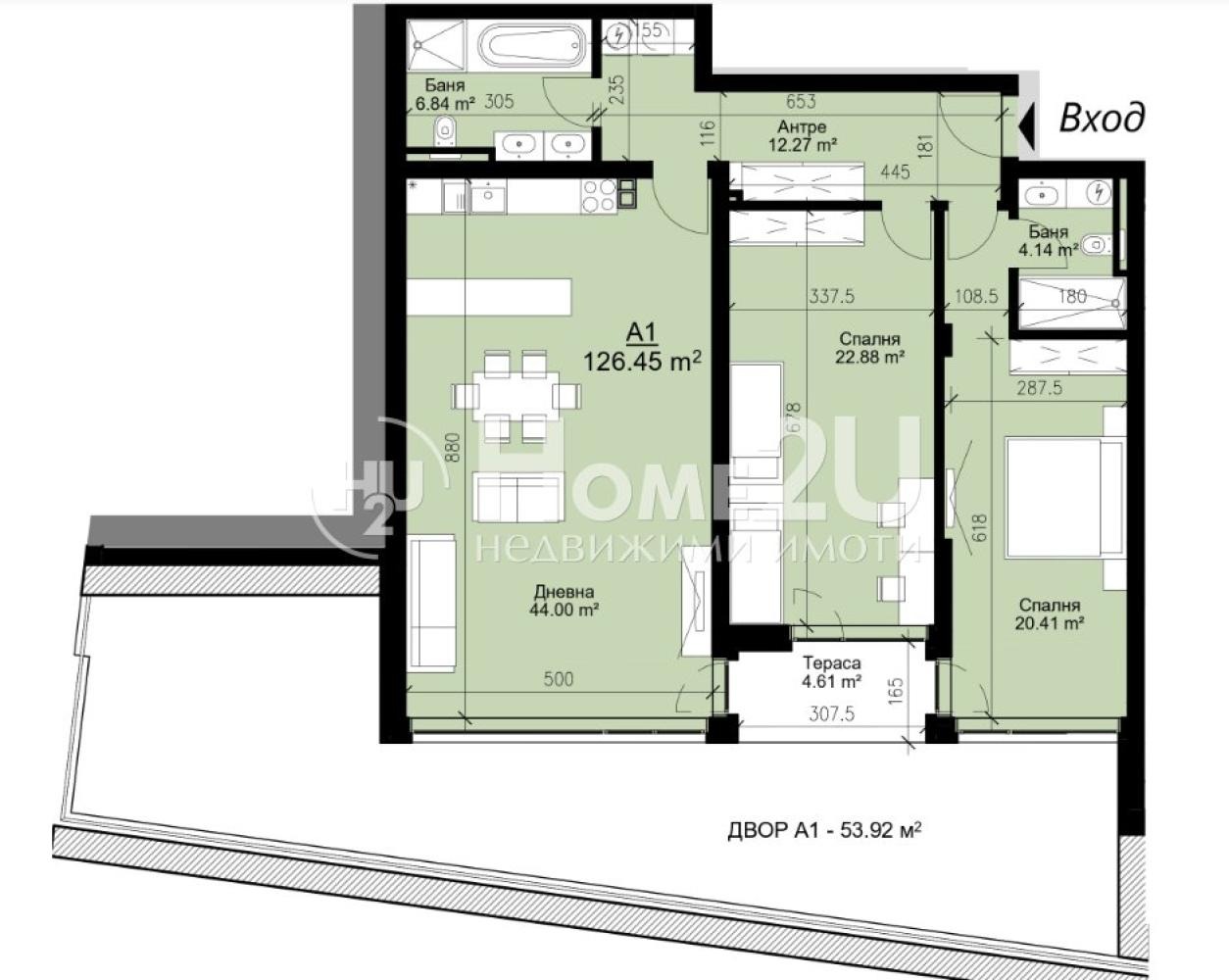 Апартаментът разполага с функционално разпределение и впечатляващо просторен дневен тракт с обособени зони за кухня, трапезария и хол идеално пространство за семейни събирания и уютни вечери. Двете спални са големи, светли и правилни по форма, което позволява лесно обзавеждане и максимален комфорт.