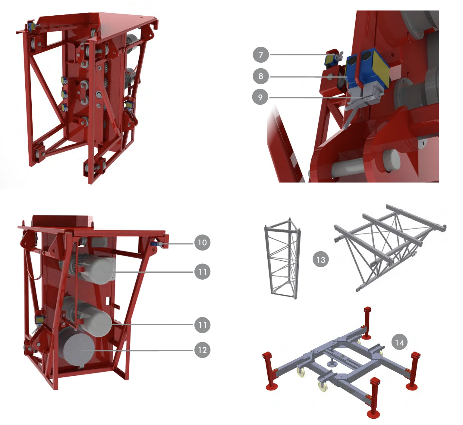 Платформата MC-36/15 е специално проектирана за строителство и реконструкция, работейки на базата на система със зъбни колела. Тя може да се движи вертикално по един или два мачти. Строителната асансьорна платформа е в отлично състояние и е подготвена за транспорт. Спецификациите включват: - Височина на колоната: 30м (може да се удължи с допълнителни елементи до 120м) - Дължина на платформата: 10м - Широчина на платформата: от 1. 20м до 1. 40м - Товароподемност: 1500кг и 5 работници - Трифазен ток