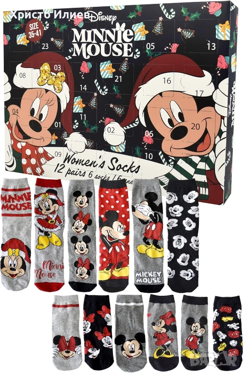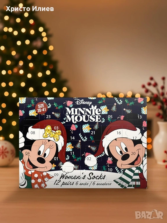 Коледен календар Дамски чорапи Мики Маус Мини маус Адвент календар 12 чифта