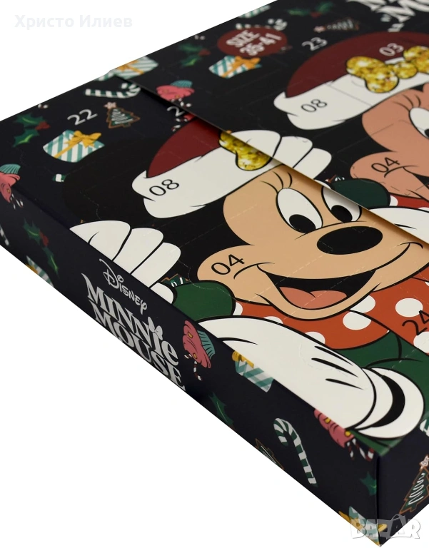 - Вълшебен адвент календар с Дисни: адвент календарът Мини Маус носи нова изненада всеки ден. 12 чифта чорапи елегантно смекчават чакането до Коледа.