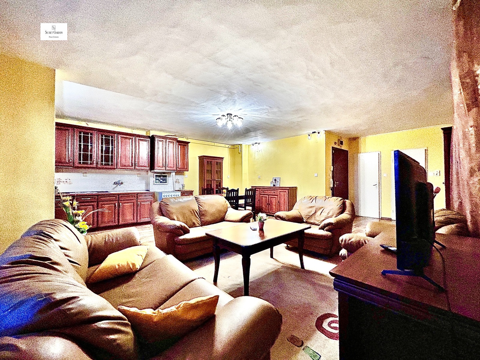 Жилището предлага уютна атмосфера и възможност за лесно възстановяване на първоначалното тристайно разпределение при желание.