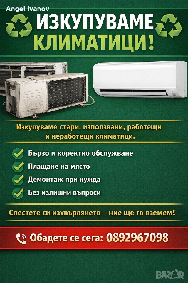 ИЗКУПУВАМ КЛИМАТИЦИ НА ДОБРИ ЦЕНИ 0892967098