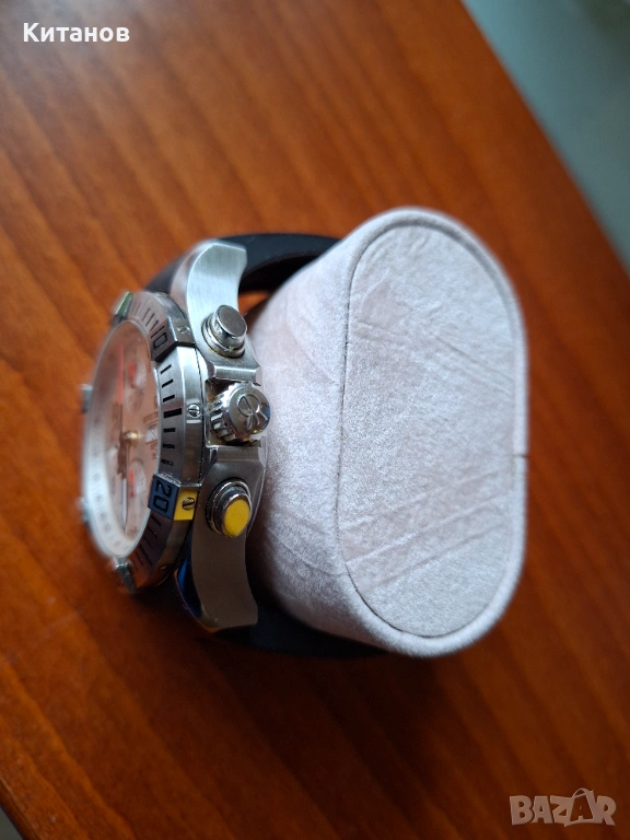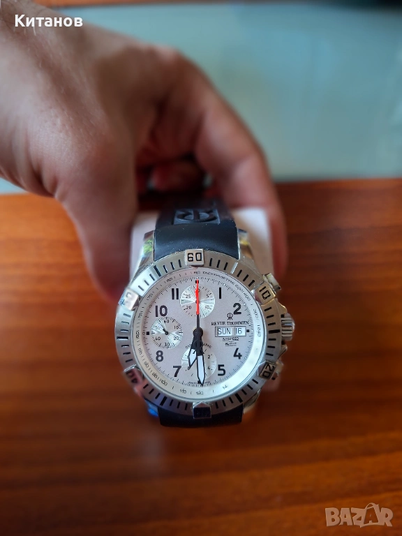 Продавам автоматичен механичен швейцарски часовник Revue Thommen, модел Airspeed XL Large Chronograph. Работи отлично и поддържа време на хронометър. Носен е малко и дълго време няма да има нужда от профилактиране. Каишка удобна за китка до 21 см. 28800 вибрации, 25 камъка, механизъм ETA 7750 Valjoux. Конкретно този цвят и окомплектовка на модела са изключително трудно достъпни и свършиха първи при появата на модела. Доказано редица президенти на САЩ, сред които Кенеди, Айзенхауер и Линдън Джонсън, са носили часовници Revue Thommen. Само лично предаване в София.