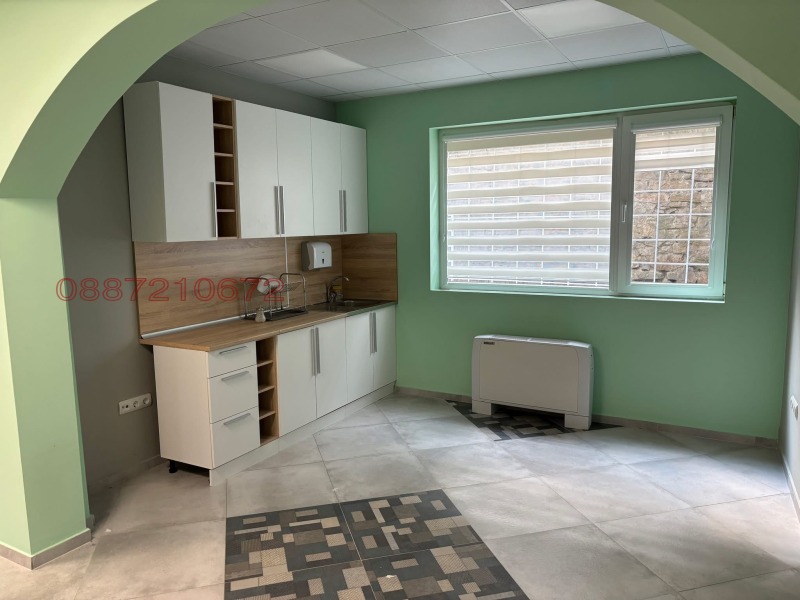 Представителен офис в офис сграда, Център, Велико Търново. Имотът се намира в район с офис и жилищни сгради. Разположен е на целият втори етаж на четириетажна офис сграда с чиста площ 206кв.м. Вътрешното пространство включва три офисни помещения, битовка и санитарен възел (две тоалетни, два писоара, баня с душ, предветие с две мивки). Луксозно изпълнение с висока енергийна ефективност. LED осветление, отопление и охлаждане с термопомпа. Три проводна електрическа инсталация с дефектно токови защити. Комуникационна Gigsbit мрежа с 20 точки за работни места, 2 точки за мрежови принтери, 2 Wi Fi точки и 6 точки за камери. Система за контрол на достъпа с чип и код. Ползва се голяма тераса (70кв.м), на която се излиза от офиса, завършена е с декинг. Терасата не влиза в общата площ на имота. Пред сградата има паркинг. Не пропускайте да видите този имот, достоен за вашия бизнес.