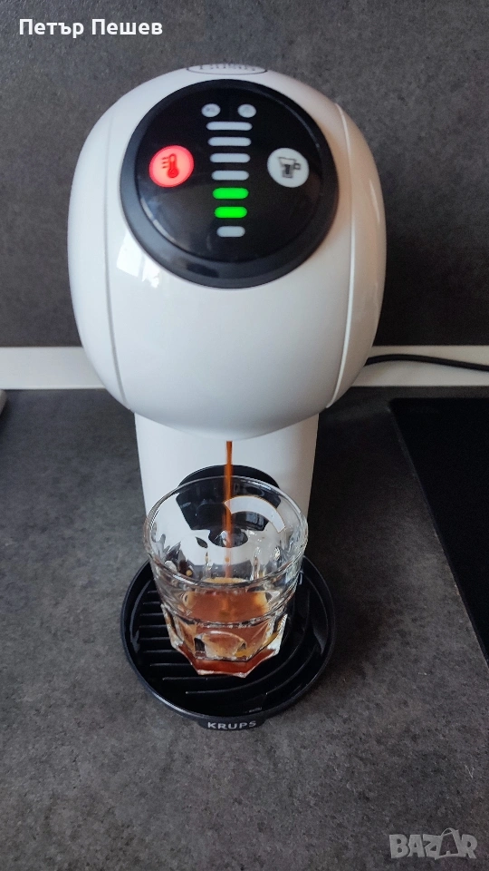 Какво се случва, когато креативността срещне функционалността? Създадена е новата NESCAFÉ® Dolce Gusto® Genio S от Krups®. Перфектно интегрирана и удивително компактна, ще ви хареса как се побира навсякъде, добавяйки точното количество изтънченост. Не се заблуждавайте от размера ѝ, тъй като има функции, подобни на тези на бариста. Функцията ѝ XL ви позволява да персонализирате размера на напитката си според предпочитанията си. С над 30 налични напитки на кафена основа, от студени до топли, системата за високо налягане на машината създава кафе с професионално качество за секунди. Просто поставете една от херметическите затворени капсули за богато, ароматно изживяване всеки път.