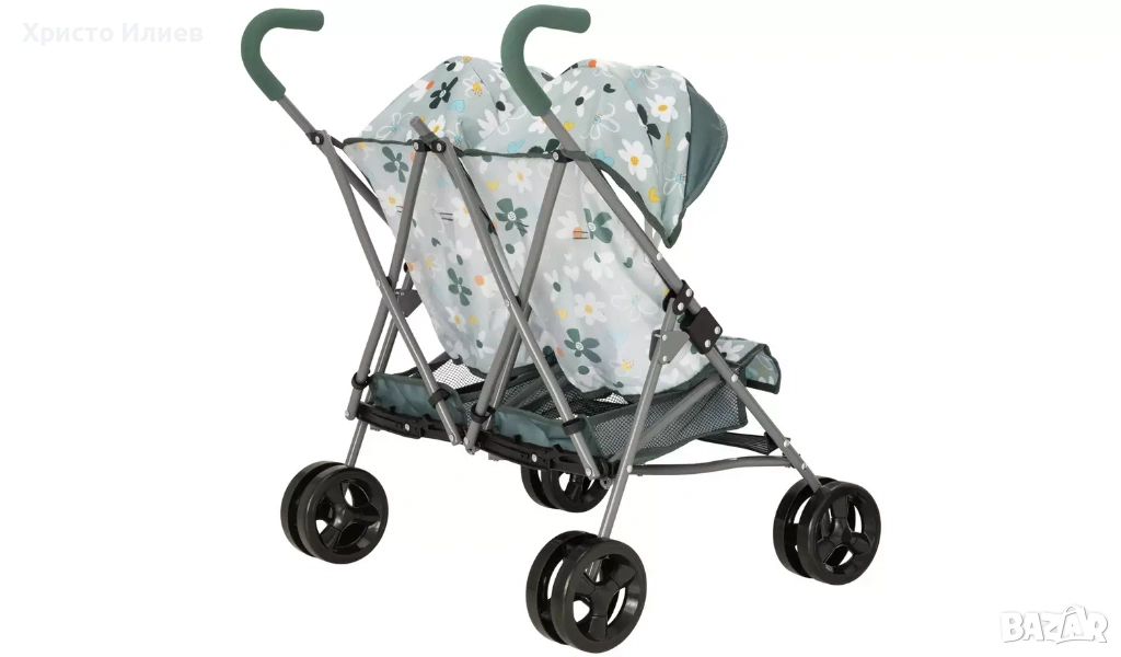 Стилната количка Mamas & Papas Junior Twin Cruise има седалки една до друга за двойно забавление, точно както истинската детска количка Mamas & Papas Twin Cruise. Характеристиките включват удобни дръжки, регулируеми тристепенни сенници, колани за сигурно закрепване на вашите бебета и двойни колела за лесно управление. Идеална за забавни разходки с любимата ви кукла, тази количка за кукли разполага с механизъм за сгъване тип „чадър“ за лесно съхранение след игра. Подходяща за кукли до 45 см и за деца на възраст 3 и повече години.