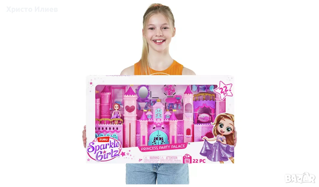 Парти дворецът Sparkle Girlz Princess включва приказна кукла Sparkle Girlz, идеално подходяща за този очарователен дворец! Пригответе се да се впуснете във вълшебни приключения заедно със стил!