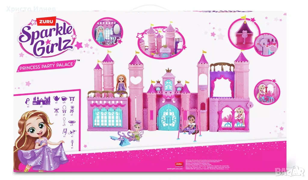 Влез в партийния дворец на принцесите Sparkle Girlz, където ще откриеш великолепна трапезария, подходяща за кралски празненства, ослепителен дансинг и тайни балкони за шепнещи разговори и вълшебни моменти!