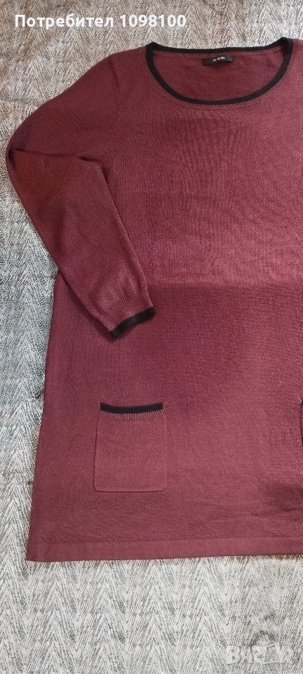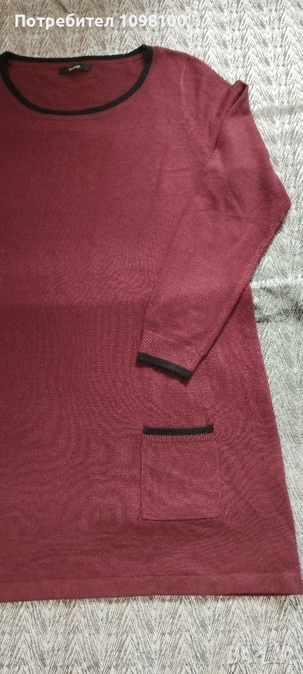Блузата е нова, просто не съм преценила размера, затова я продавам. Размер 2XL с дължина 85 см., ширина под мишниците 54 см., ръкава е 72 см. Цвета е бордо с две джобчета. Марката е английска. Цена 10 евро.