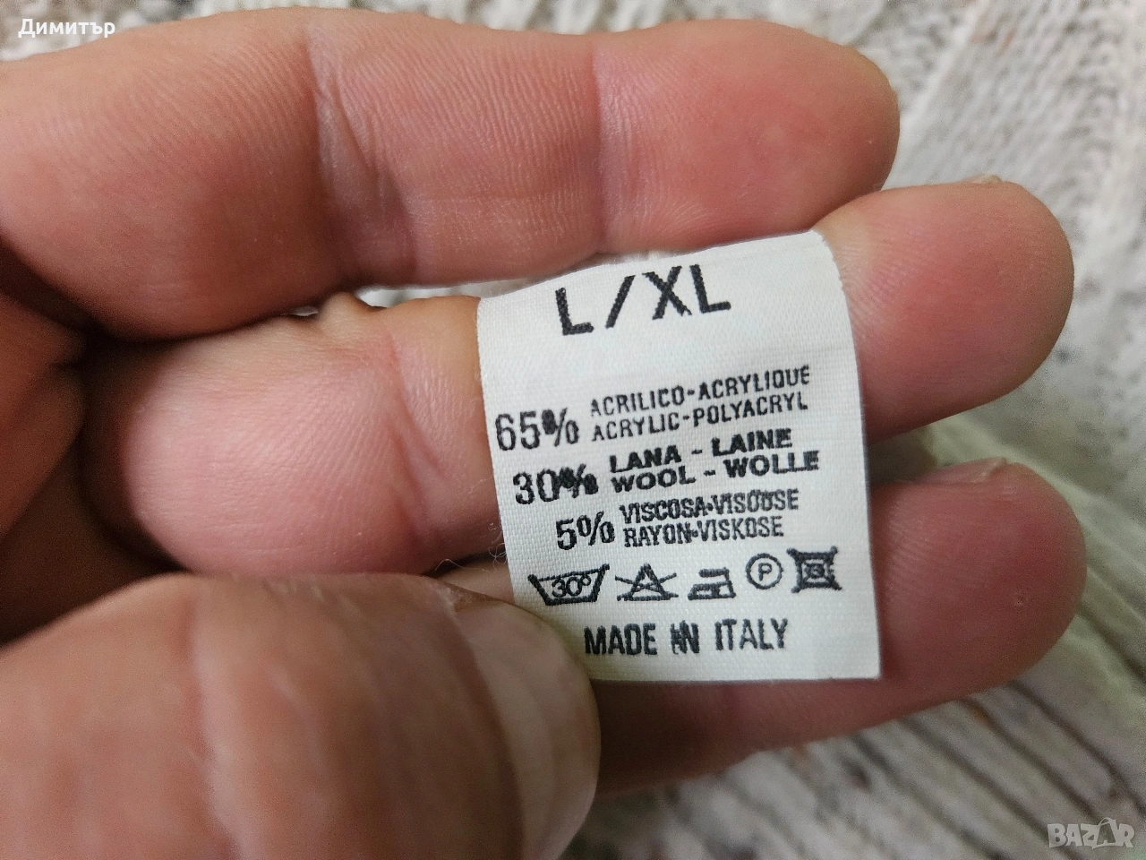 Вълнен произведен в Италия.