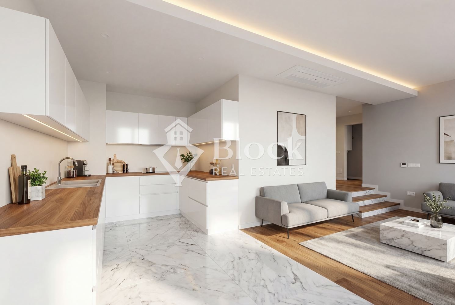 За Ваше улеснение, прилагаме схема с разпределението на имота, както и визуализации с примерно обзавеждане на имота.
