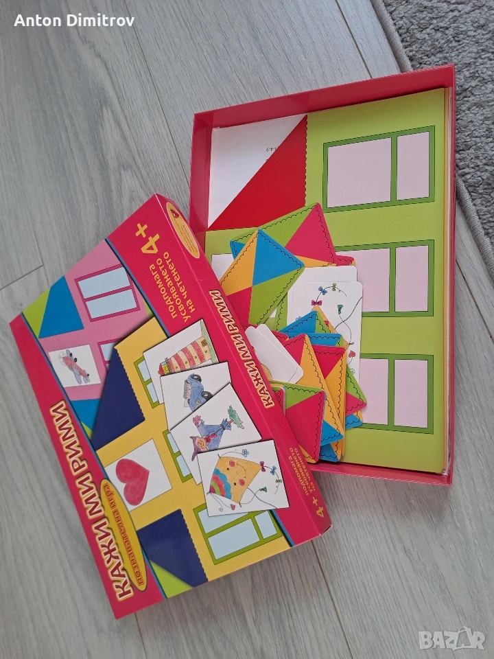 Снимка 3 - Игра "кажи ми рими" с асоциации фигури и рими - 5€ Снимка 4 - пъзел мики маус - 2€ Снимка 5 - дъска с маркер и медия която презентира фигури, може да се рисува върху нея и да се трие с мокра кърпа или да се използва лист за рисуване - 5€