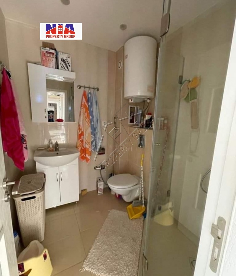 Имотът е разположен на последен пети етаж и разполага с кухня и всекидневна , две спални, баня с тоалетна , коридор и две тераси. Напълно обзаведен и само на метри от плажа. В сградата има асансьор.