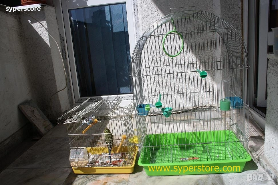 Клетата е чисто Нова в комплект с 2 хранилки един воден резервоар, 2 кацалки.Люлките са отделно по 4,90 лв. Достатъчна е за 1 или няколко птици (папагали). Много удобно се чувстват.