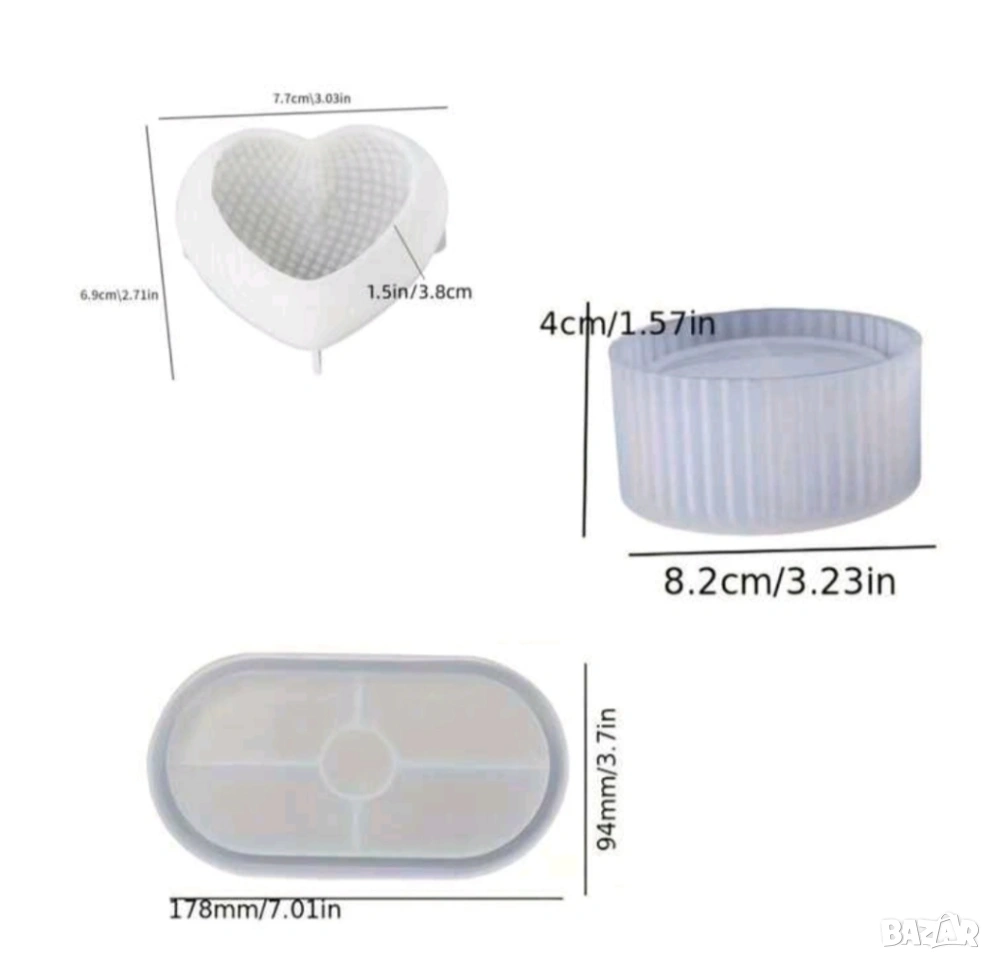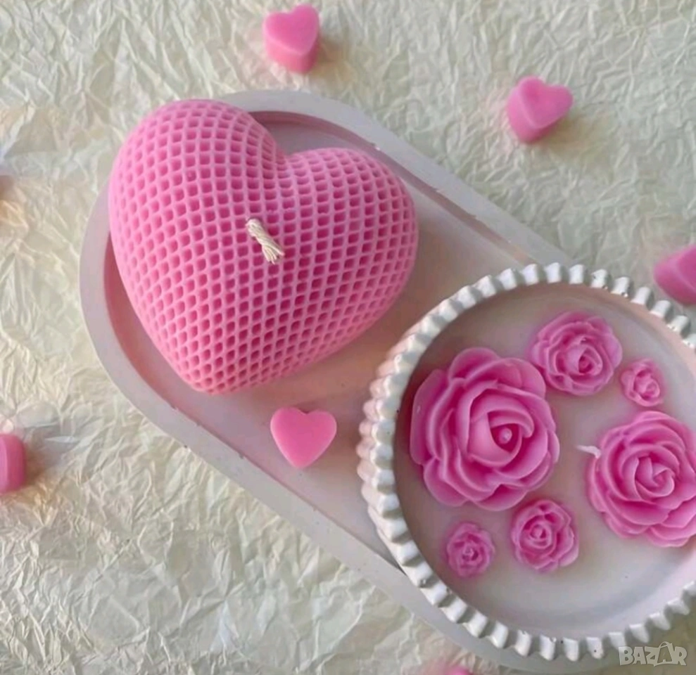 Нови, комплект от три броя - поднос, сърце и кашпа. За епоксидна смола и гипсови отливки.