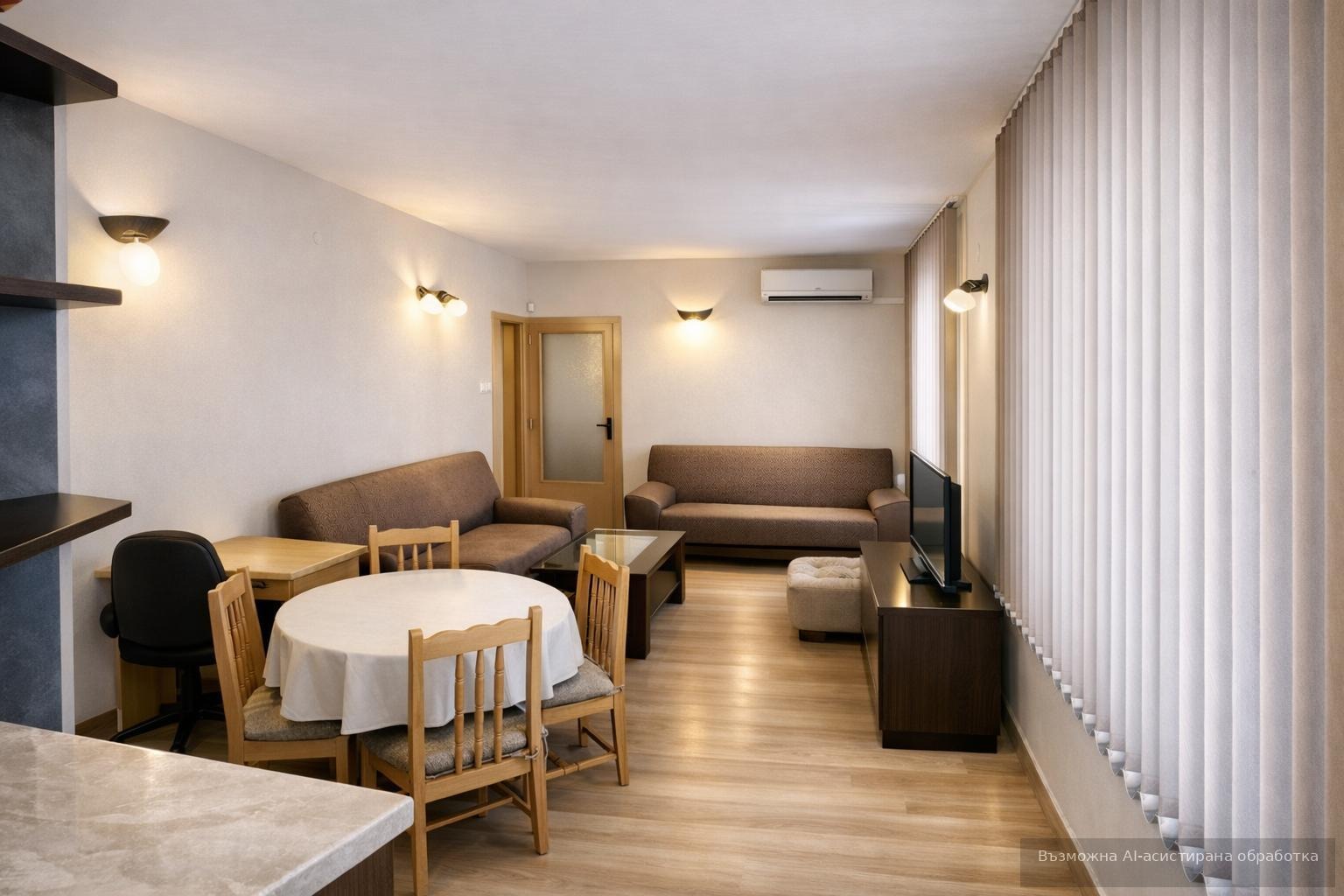 Жилището се предлага напълно обзаведено и оборудвано с всичко необходимо за едно домакинство.
