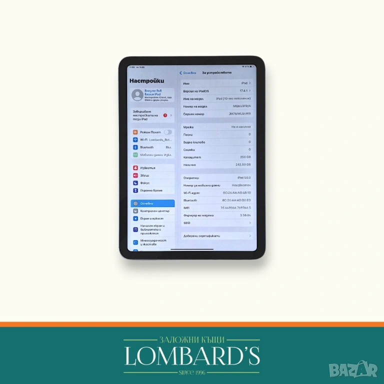 Таблет Ipad 10 gen 2022 256GB, N: 44153361 → Обява 53492621