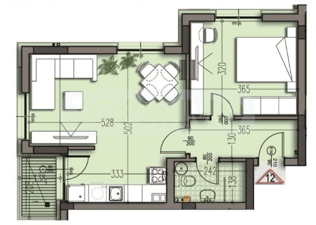 Разположен на четвърти етаж със западно изложение и следното разпределение: антре, всекидневна с кухненска част с излаз на тераса, спалня, санитарен възел, мазе. Кокетна сграда, която ще бъде завършена с луксозни общи части, 10 см. Топлоизолация XPS, 5 - камерна дограма Rehau, алуминиеви парапети, стъклопакет-24 мм топлоизолиращи Energy, противопожарни входни врати.