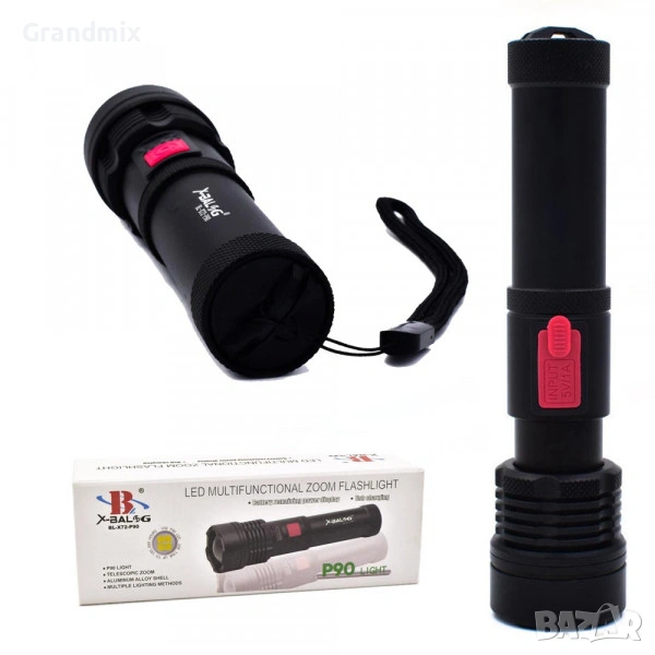 Изключително мощен презареждаем фенер с телескопичен zoom и обхват до 1000 м.