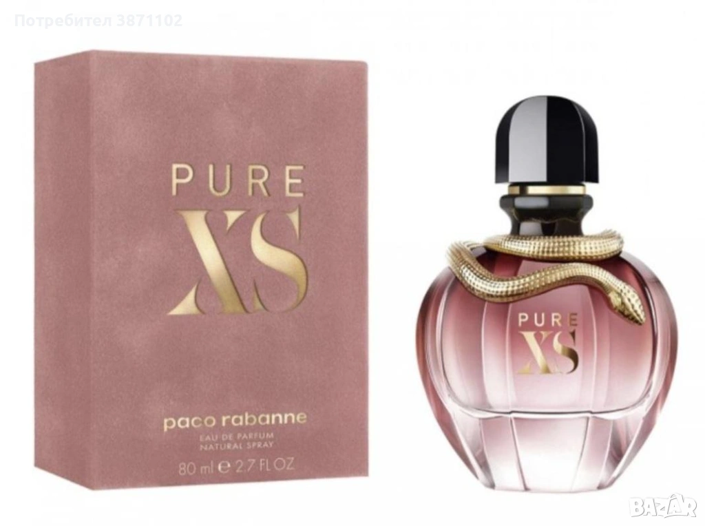№ 45. Paco Rabanne Pure XS 80 ml–дамски парфюм с ориенталско‑гурме и сладкоцветен аромат, комбиниращ свежи връхни нотки грейпфрут и джинджифил, цветни сърдечни нотки канела, ябълка и ванилия и топли базови нотки кехлибар, кедър и мирра, създаващ смел, женствен и чувствен аромат, идеален за вечерни излизания и специални случаи.