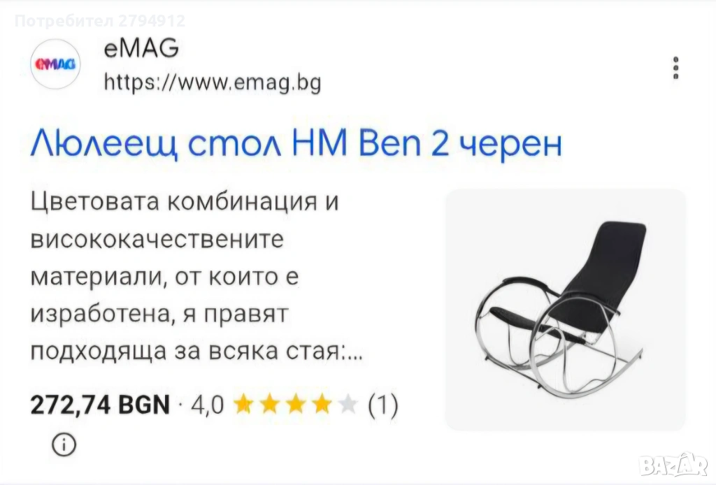Люлеящосе столче, снимка 1 - Столове - 53492870 Люлеящосе столче, снимка 2 - Столове - 53492870 Люлеящосе столче, снимка 3 - Столове - 53492870 Люлеящосе столче, снимка 4 - Столове - 53492870 1/4