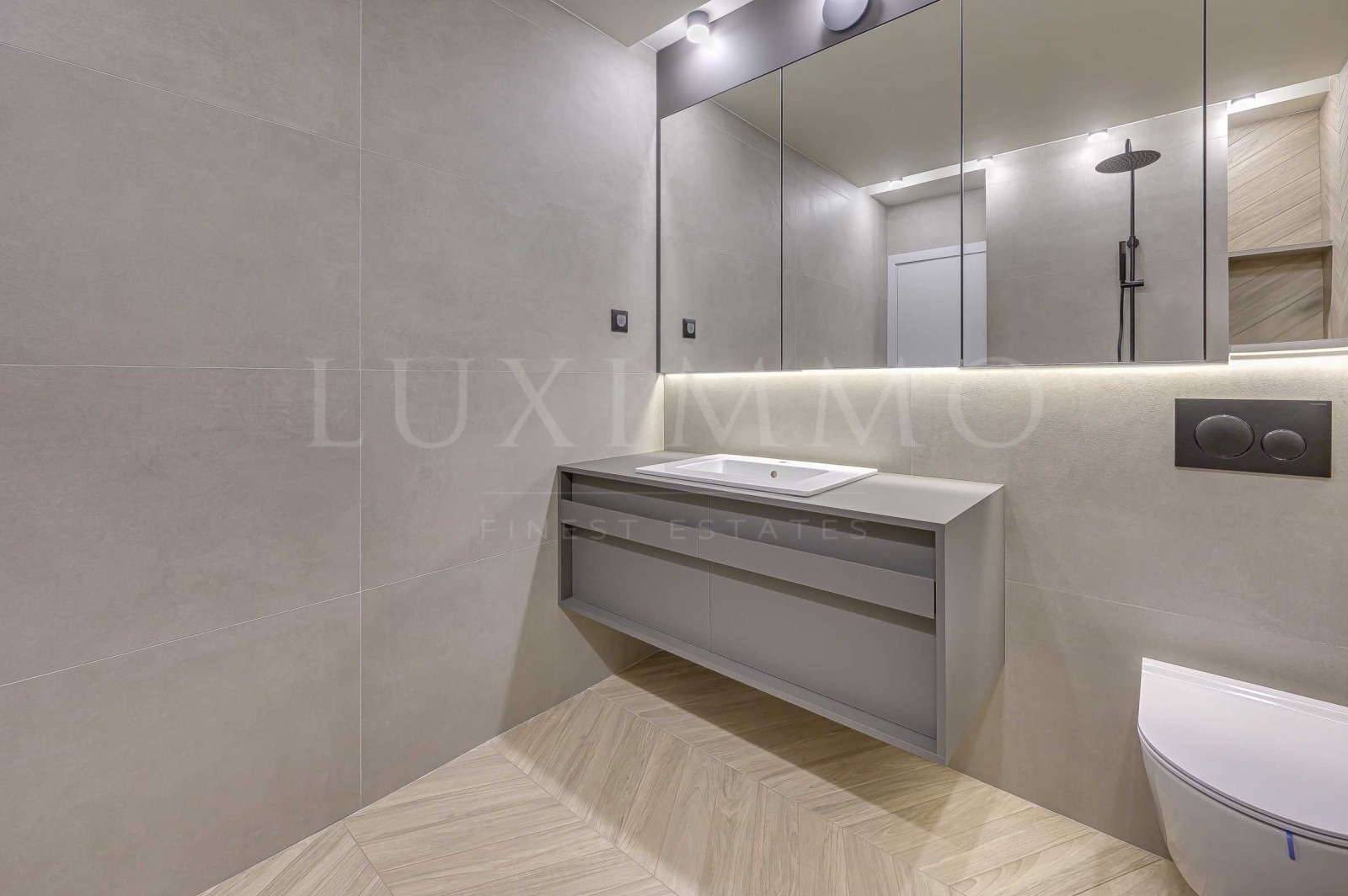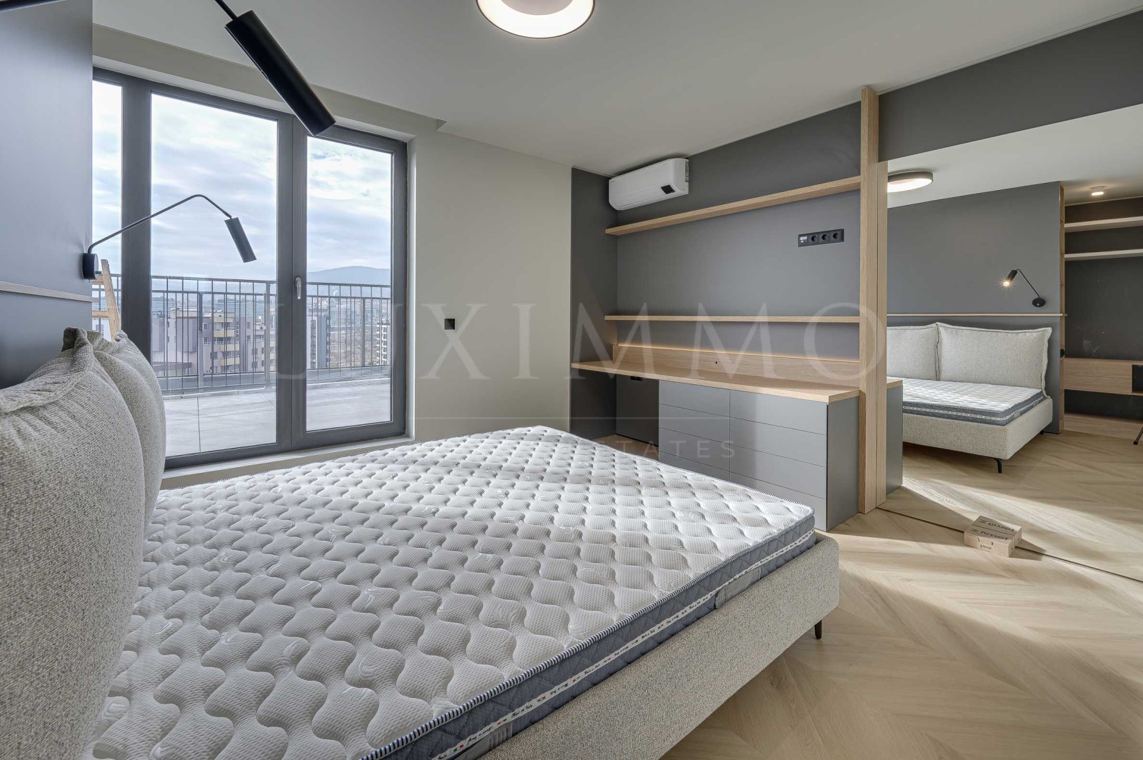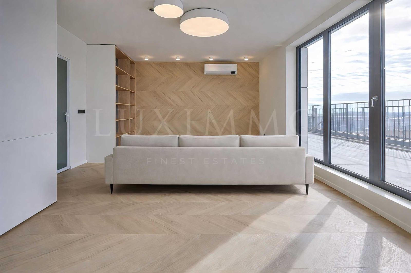 Жилището се намира на последния, 10-ти етаж и разкрива впечатляваща, отворена гледка към Витоша и околността без шум от трафик, с изобилие от естествена светлина през целия ден. Просторната панорамна тераса е с елегантна пергола и възможност за обособяване на външен кът за хранене и зеленина естествено продължение на интериора и усещането за живот на открито.