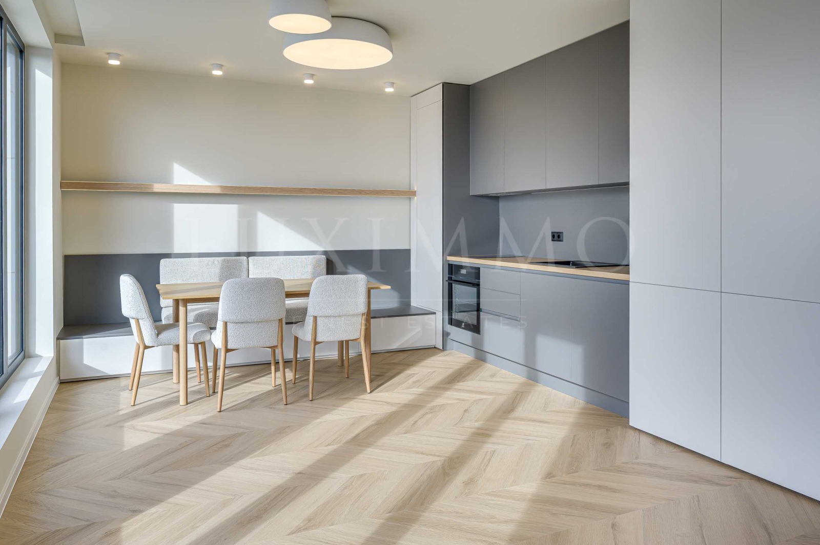 Имотът е отлично решение за семейства или професионалисти, работещи в района ново, необитавано жилище в модерен, функционален и зелен комплекс. Апартаментът е реализиран по индивидуален дизайнерски проект с внимание към всеки детайл и е напълно готов за нанасяне.