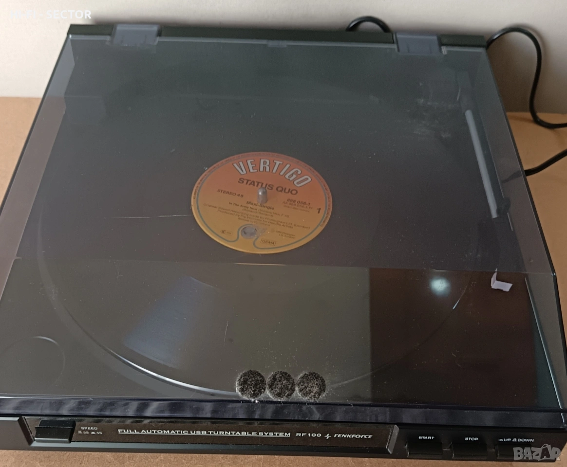 Продавам бюджетен грамофон на Renkforce RF 100, много добро състояние, здрави капак и панти, ремъчно задвижване, пълен автоматик, иглата също е в много добро състояние. USB кабел, книжки.