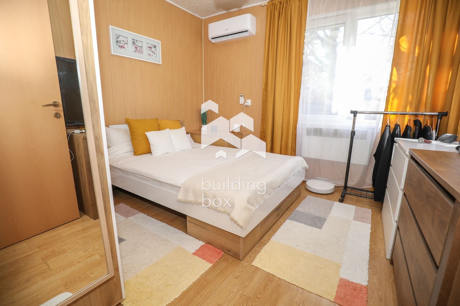 Отоплението е с камина и климатици.