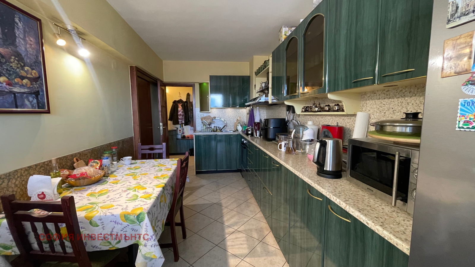 Преставяме ви апартамент с две спални, хол с трапезария, две бани, отделна тоалетна, две тераси и голяма отделна кухня. Моля да изгледате видеото, което дава много информация. Сградата е въведена в експлоатация 2000г. Апартаментът е с изложение югоизток и е топъл. Отоплението е решено на ток, като имота има трифазен ток. В хола има камина- действаща на дърва. Едната спалня е преходна, другата е самостоятелна. Една от терасите е усвоена и се ползва за офис. Към спалнята с усвоената тераса има бяня и дрешник. Имотът е комфортно организиран. В коридора има голям гардероб.Отделената кухня го прави интересен и желан от семейни двойки. ЗП площ на имота е 112 кв.м, като отделно има 6кв.м мазе- използваемо. В рекламираната квадратура не сме включили общите части и мазето. Апартамента е тих и не гледа към булеварда. В задната част на двора има платени места за паркиране. Продава се във вида, в който е на снимките без личните вещи, разбира се. Фирмата ни работи с фирма 'кредит адвайc'; за улеснение при финансиране от банки. Ще бъдем с вас до края на сделката . Отделно можем да ви съдействаме и за евентоално освежаване или преустройство чрез нашия отдел за ремонти. Ще ви очакваме за огледи.