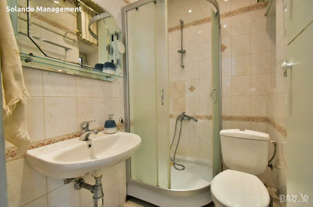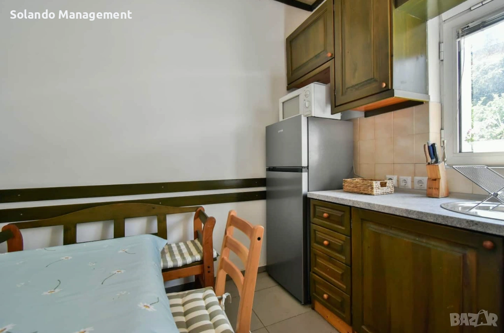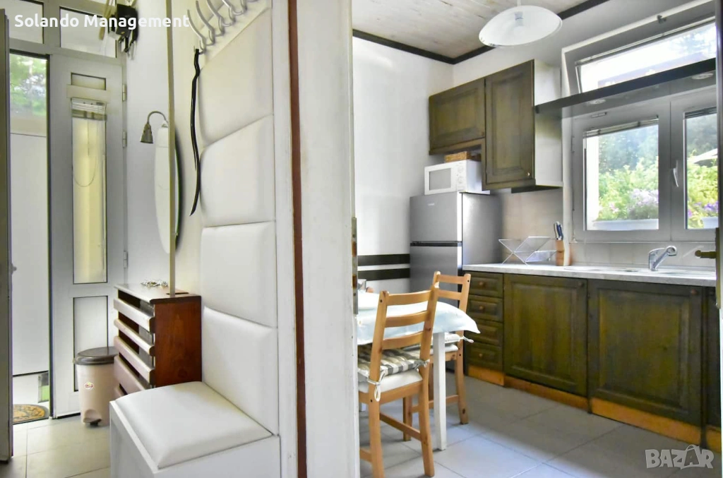 Разпределението е: входен коридор, предверие, самостоятелна просторна стая, отделна кухня и баня с тоалетна. Пространствата са светли и добре организирани. Отоплението е решено чрез ТЕЦ и климатик, което осигурява комфорт през всички сезони. Имотът се намира на партерен етаж в малка, добре поддържана тухлена кооперация с едва два етажа и контролиран достъп. Сградата е спокойна и осигурена със СОТ, което гарантира сигурност и комфорт.
