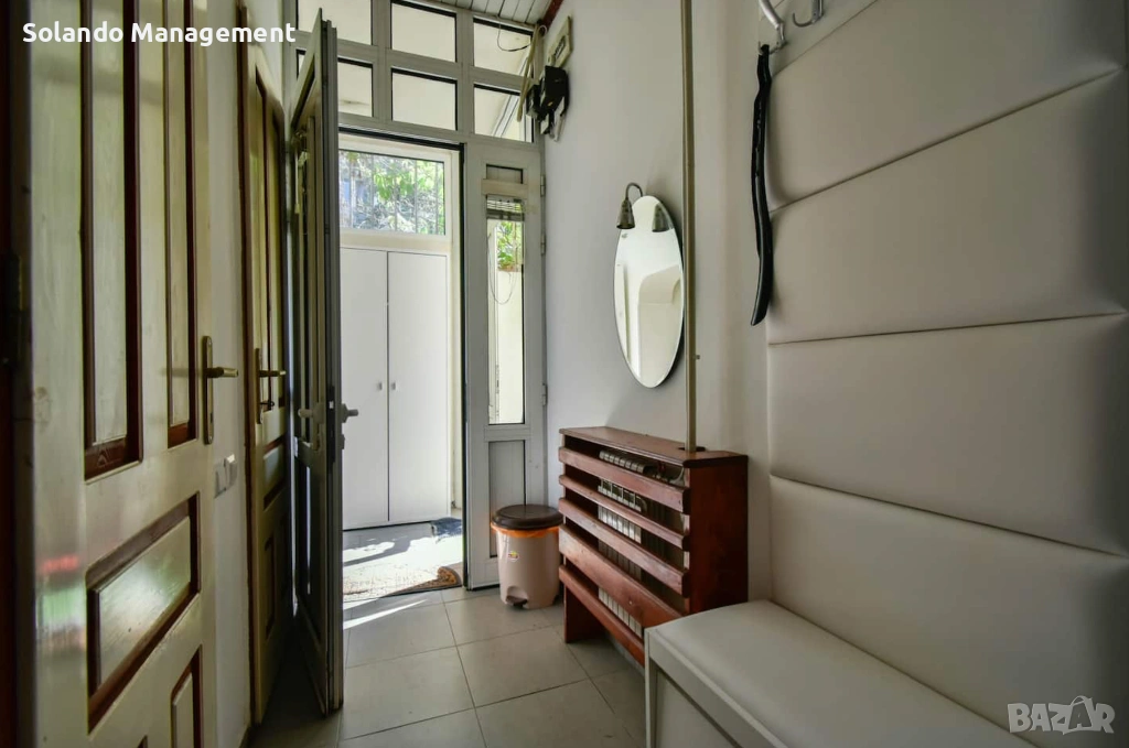 Истинското предимство на този имот е директният и неограничен достъп до вътрешна градина, която се ползва само от този апартамент и имота на горния етаж. Зелената и цветна градина с обособена външна кухня и барбекю зона. Идеална е за приятелски събирания, спокойна закуска на открито или прохладна вечер с чаша вино.