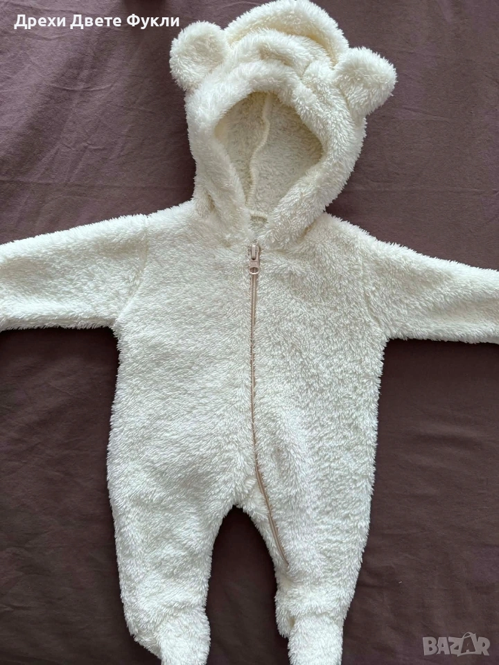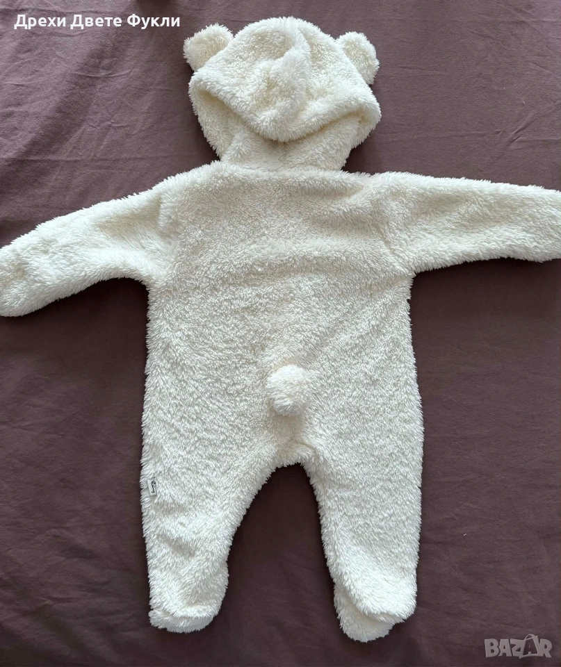 Бебешки зимен гащеризон Мече с ръкавички, предно закопчаване с цип и качулка с ушички Мече в цвят екрю. За малките любители на зимните приключения, "Rainy Бебешки зимен гащеризон Мече" е не просто дреха, а топъл прегръдка, която ще ги пази от студа. Изработен от 100% полиестер (ко-полар), този плюшен гащеризон е създаден да дарява уют и комфорт дори в най-хладните дни. Бежовият цвят придава класически и изискан вид, като същевременно допълва всяка зимна сцена със своята топлина. Специално проектиран с мисъл за най-малките, гащеризонът разполага с удобно предно закопчаване с цип, което улеснява родителите при обличането. Качулката, завършваща със сладки ушички на мече, не само добавя игрив елемент към дизайна, но и осигурява допълнителна защита за главичката на вашето дете. Ръкавичките, прикрепени към ръкавите, пък предпазват нежните ръчички от студа, а малката и сладка опашка на гърба е очарователен акцент, който прави гащеризона още по-привлекателен. Изработените от висококачествени, меки и хипоалергенни материи, тези зимни бебешки дрешки са безопасни за нежната кожа на вашето бебе. Произведен в България, този гащеризон с мечета е гаранция за качество и дълготрайност, което е важно за родителите, които търсят най-доброто за своите деца.