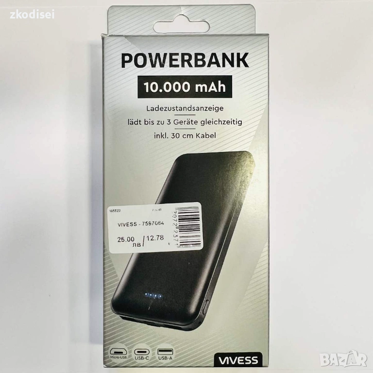 Power bank VIVESS 7597064, снимка 1 - Друга електроника - 53493563 1/1