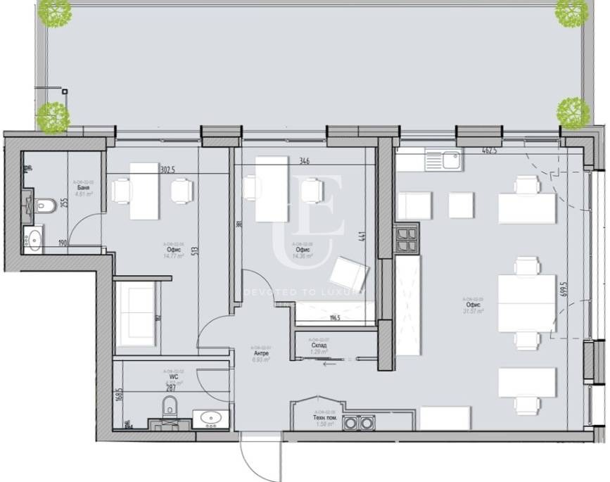 Unique Estates има удоволствието да Ви представи офис за продажба , притежаващ просторна слънчева тераса. Офиса се намира в изключително луксозна сграда, без компромис в качеството на строене. За удобството и комфорта на живущите в сградата са предвидени луксозни общи части с настилки от мрамор, рецепция, охрана, контрол на достъпа с лицево разпознаване, видеонаблюдение в общите части и околното пространство, два сутерена с паркоместа, веломеста, зарядна станция за електромобили и др. Локацията е повече от отлична - на крачка от метростанция и спирки на градски транспорт, мол и пр. Ключово местоположение с бърз излаз на главни булеварди и улици в столицата.