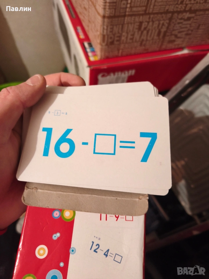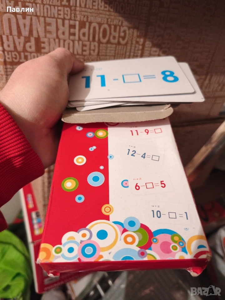 Игра-математика. Представляват картончета с прости задачи, с едно неизвестно. Цена 1 евро