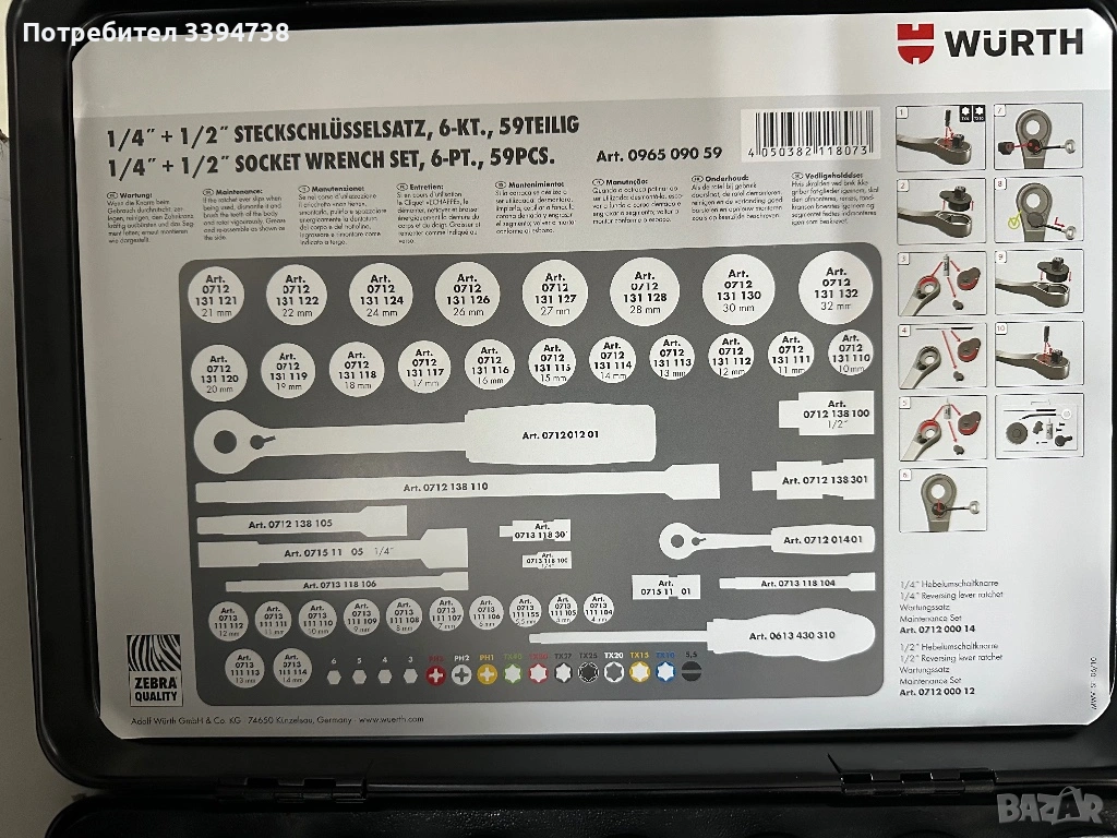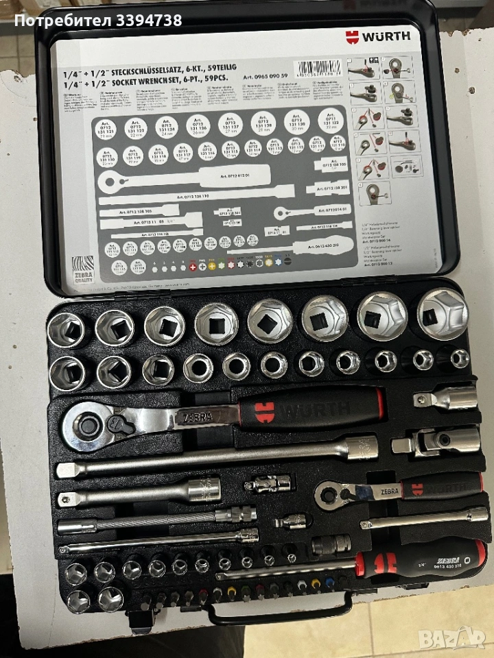 Продавам оригинален комплект гедория WÜRTH – серия Zebra Quality, която е най-високото и професионално ниво на марката. Това са инструментите, които WÜRTH предлага за сервизи и интензивна ежедневна работа.