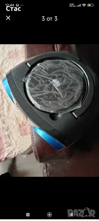 Перфектен почти нов,не съм му свалял още найлоните може и да зарежда батерий размер С-4броя,всичко му работи,колонките му светят в различни цветове в такт с музиката