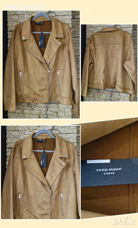 VERO MODA - 28€ Преходно яке Цвят камел Цветът е като на реалните снимки Размер по етикет EU 54, UK 26 Полиестер и еластан, имитация на велур Гръдна 138/150 см Ханш 134/154 см С голяма еластичност Мерките са дадени в свободно и разпънато състояние Обиколка бицепс 48/54 см Дължина 61 см Актуален модел в сайта на цена 44€. ❗️❗️❗️28€