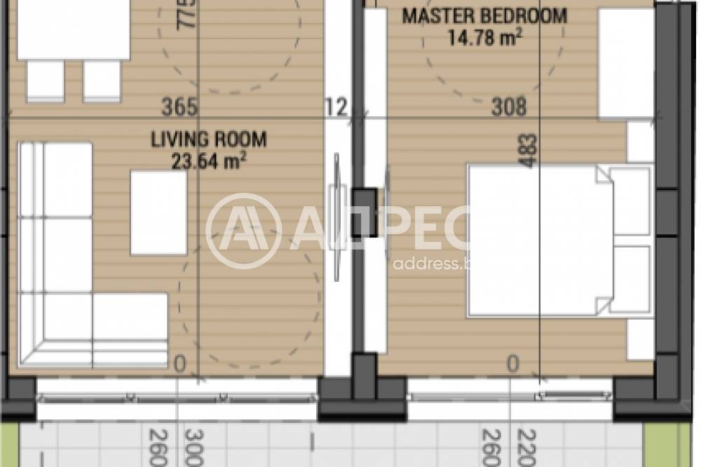 Двустаен апартамент на етаж ПЪРВИ със ЗП-61,03 кв.м., РЗП-78,17 кв.м., ворно място (индивидуално ползване) -32,45 кв.м., идеални части от парцела равняващи се на 32,45 кв.м. Разпределение: Дневен тракт с кухня, спалня, баня с тоалетна, склад. Изложение: Юг, Югоизток. Цена без