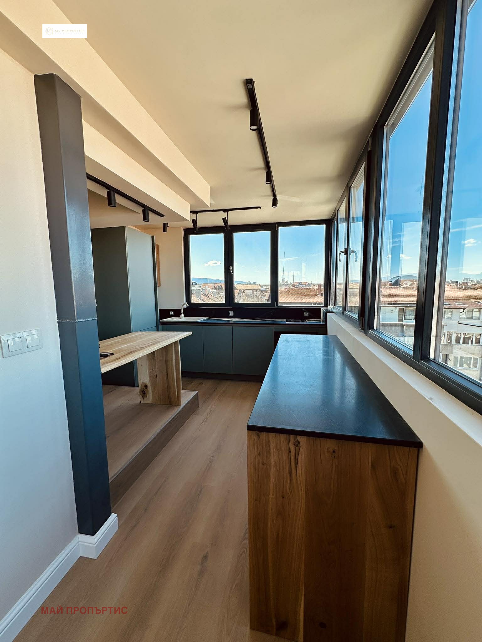 Продава се полуобзаведен с монтирана италианска кухня - https://www.venetacucine.com/cucine/oyster от MDF с вградени електроуреди Eurolux и Leks, плотове и бар.