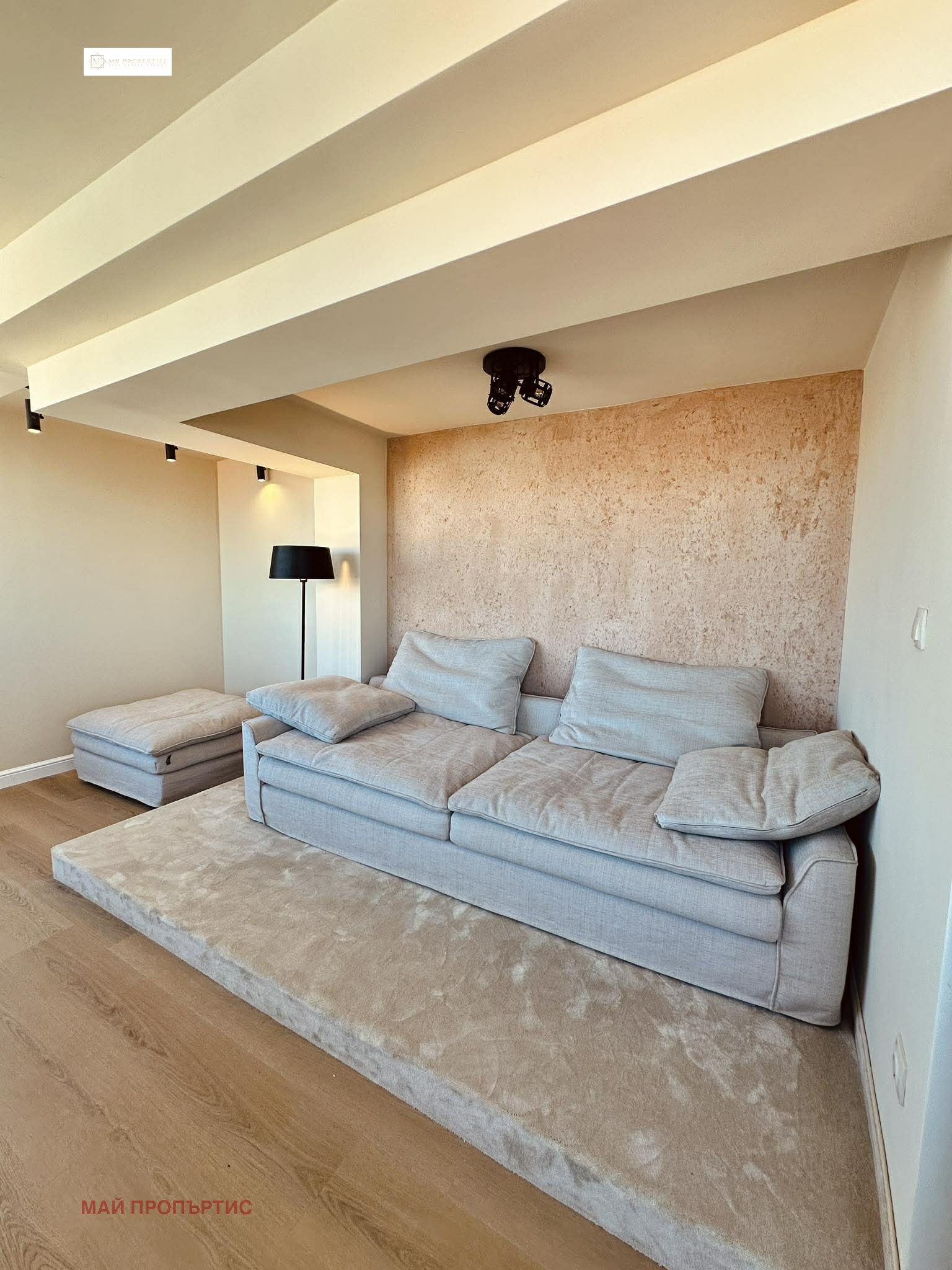 Апартаментът е изцяло ремонтиран с покрита и усвоена тераса с изградена метална и стоманена конструкция, която е мрежа от колони и греди 150/150мм, облицована с термопанели 40мм.