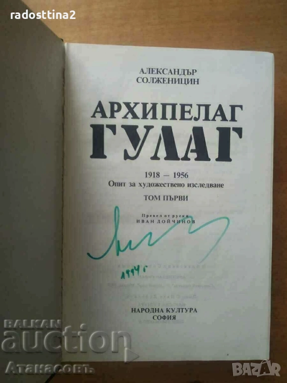 Автограф Александър Солженицин Архипелаг Гулаг → Обява 53494327