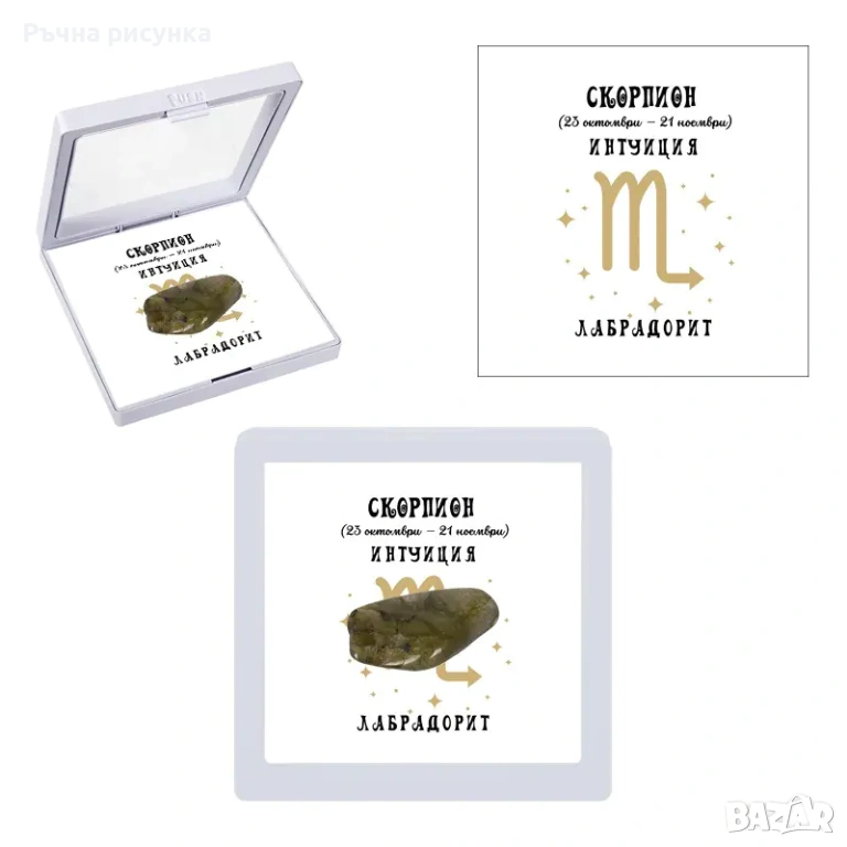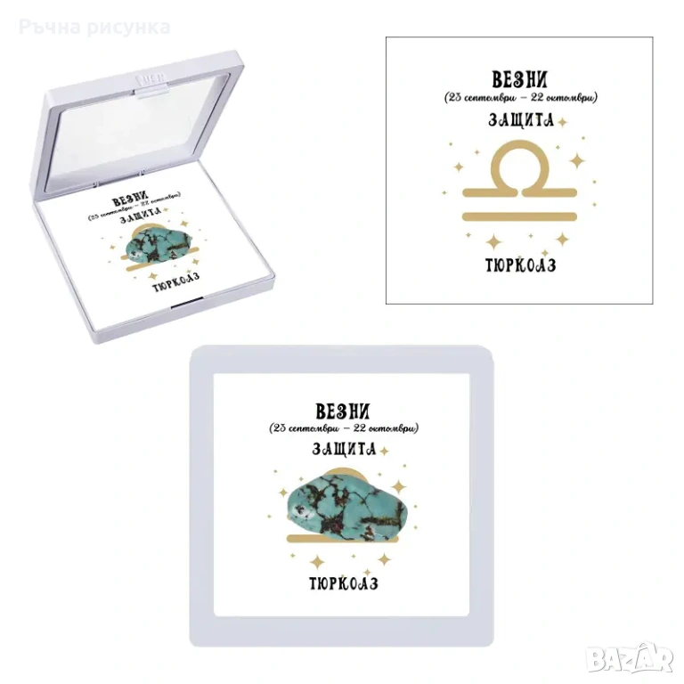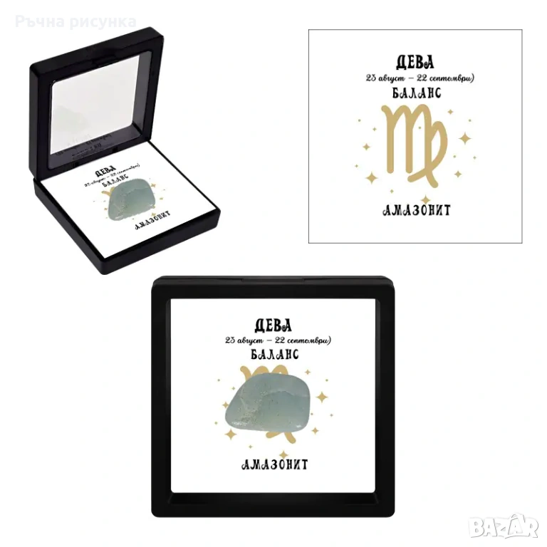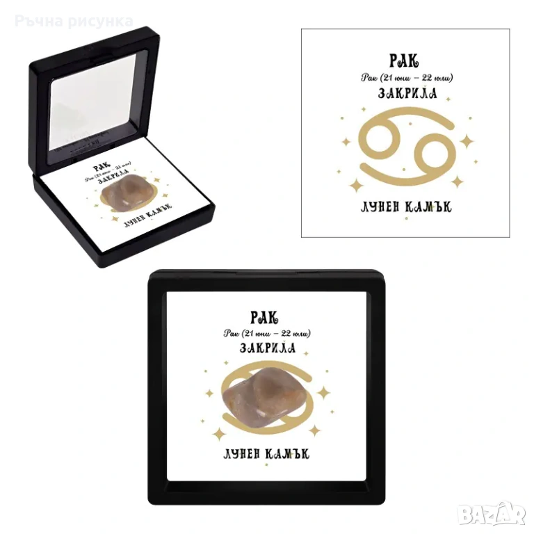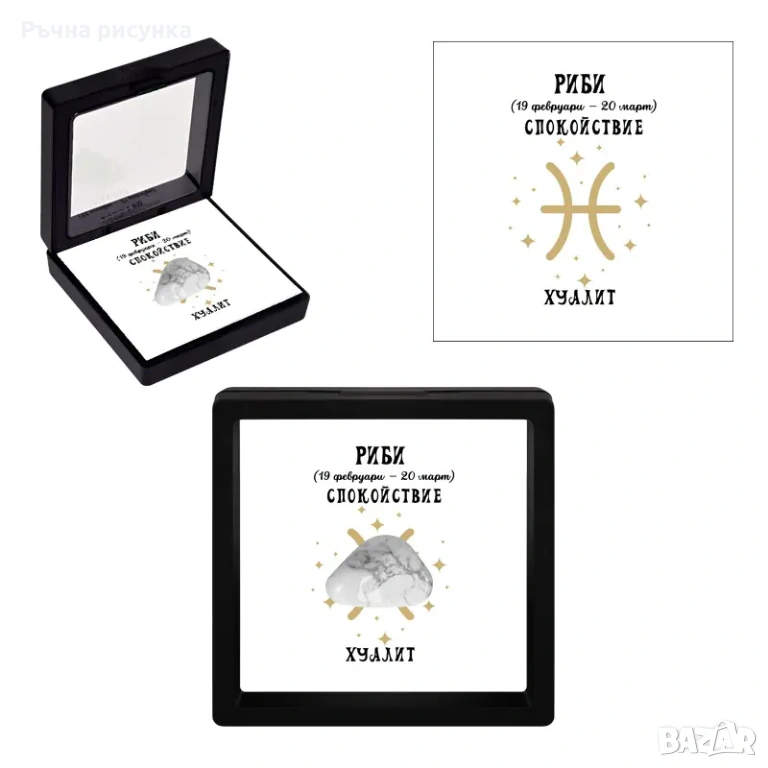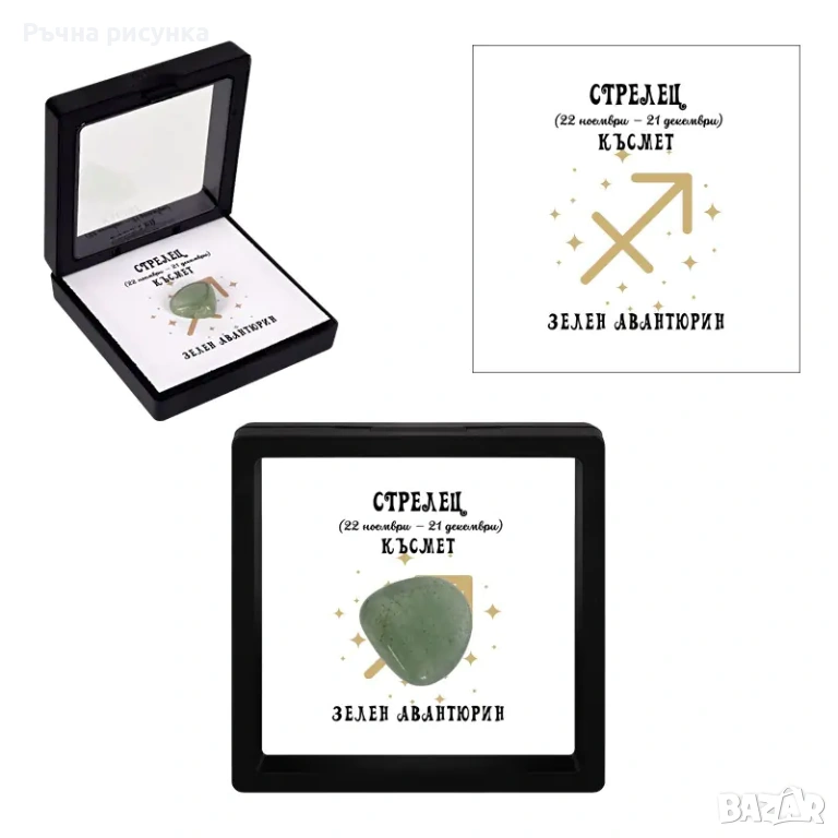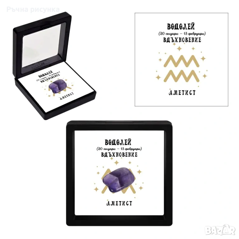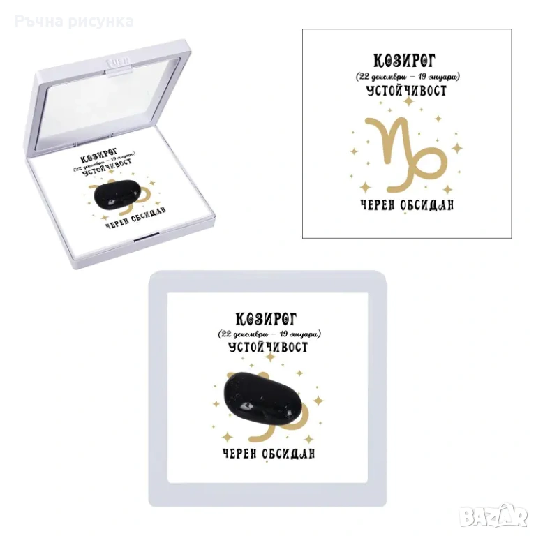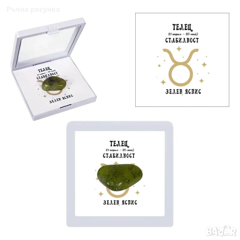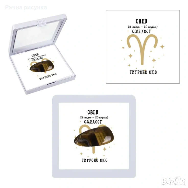 Полускъпоценен камък - талисман за всяка зодия в рамкова ПВЦ кутия с прозрачно еластично фолио.