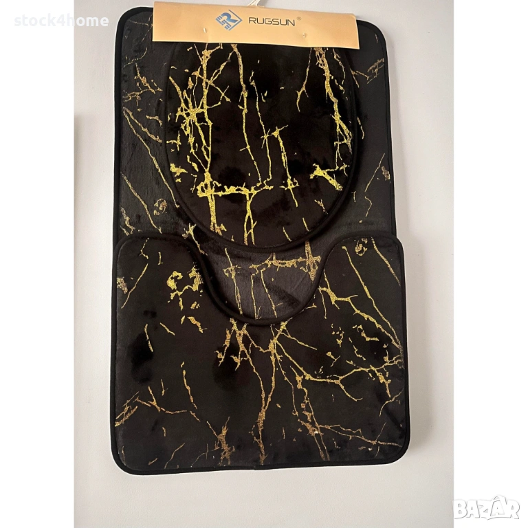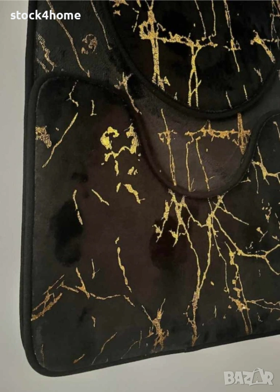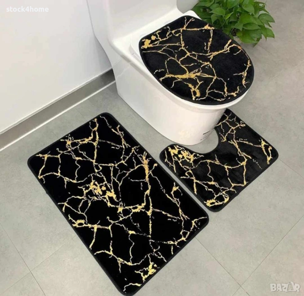 Комплект от 3 килимчета за баня, неплъзгащи се, мраморна визия, 80 x 50 см, черни