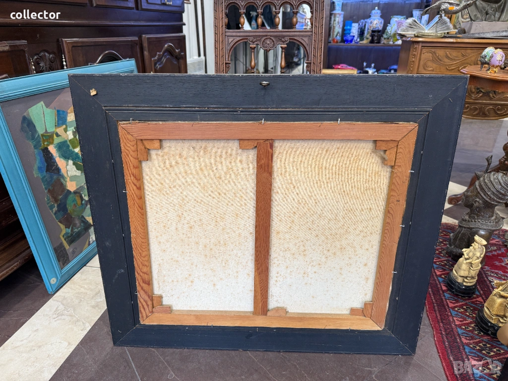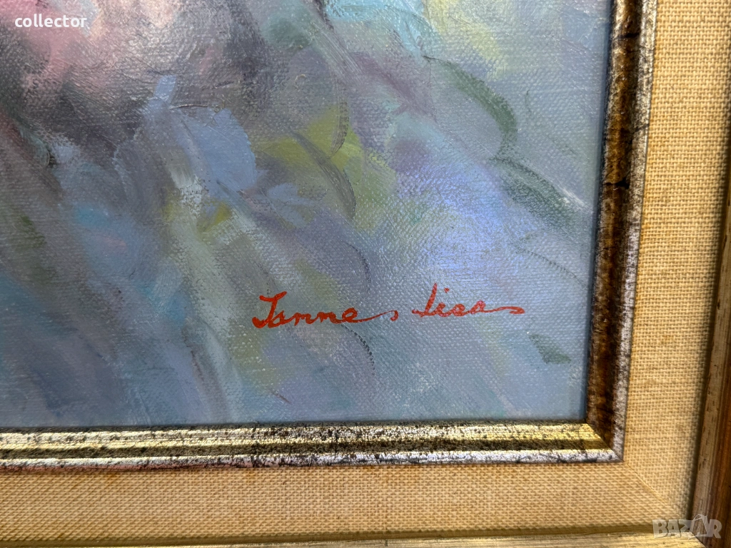 Авторска маслена картина, рисувана на платно и поставена в дървена рамка. Състояние видно от снимките.